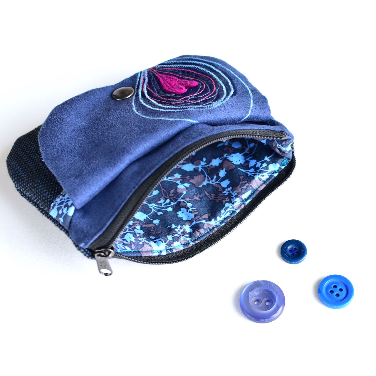 - Zapenja se na zadrgo, mali žep pa na pritiskač.