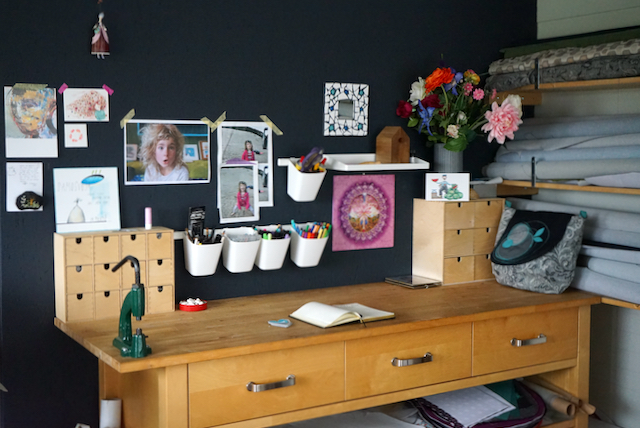 Obožujem svojo delavnico, stroje, pogled na police z blagom, pogled skozi okno, toplo kavo, dopisovanje, trenutke, ko dobim idejo in ustvarim nov kroj, tipanje in zbiranje blaga, kombiniranje, zvok, joooooj ta zvok, ko škarje zarežejo v blago, kombiniranje koščkov in novih idej…pogled na končan izdelek.…fotografiranje, zavijanje, pisanje vaših naslovov, čakanje, da dobite svojo pošiljko, ki si jo nekatere zaželite celo, kot presenečenje.